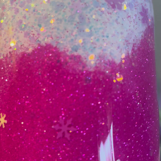 30oz skinny stainless steel tumbler covered in glitter and sealed with epoxy.