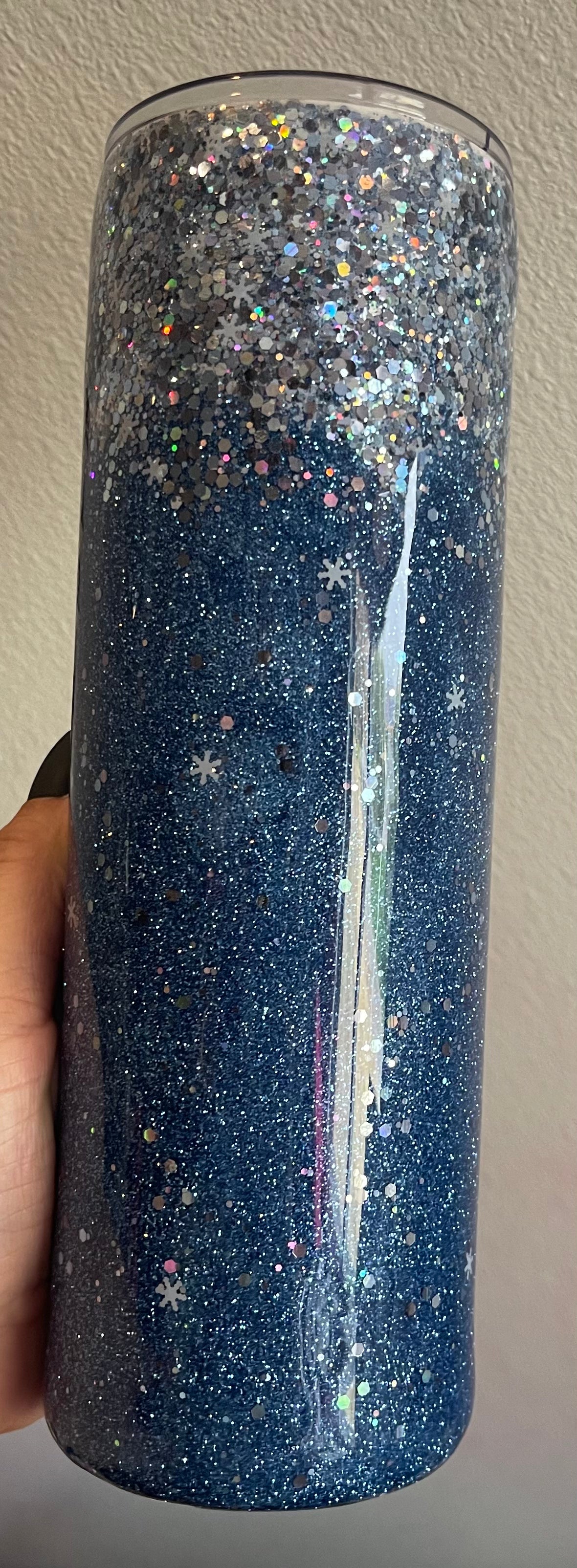 30oz skinny stainless steel cup. Glittered and sealed with epoxy.