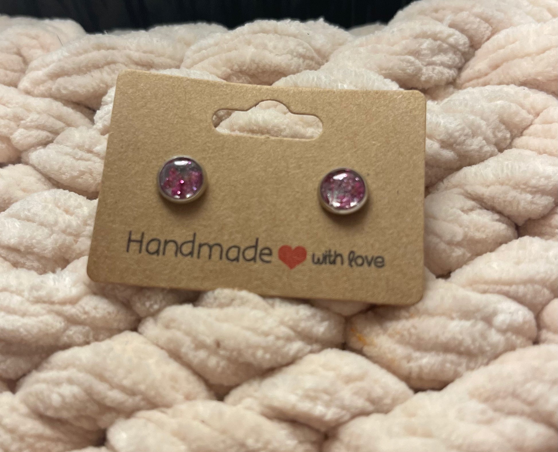 Get ready to add a touch of whimsy to your look with Pink Flowers! These stud earrings feature real dried flowers encased in resin, set in a durable 6mm stainless steel base. Perfect for adding a pop of color to any outfit. (But don't worry, no watering necessary!)