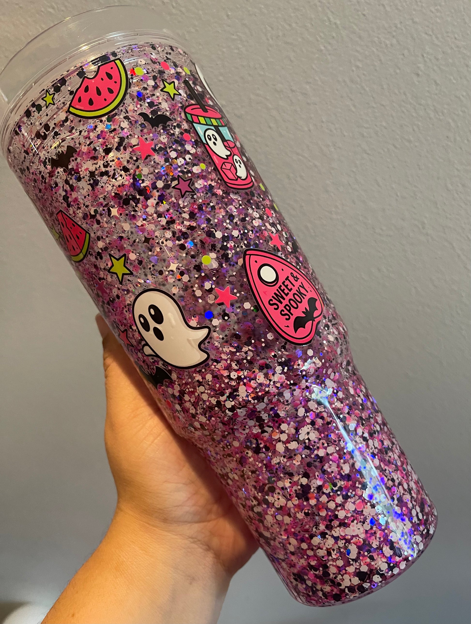 Camera does not do this 40oz snow globe justice! Very cute colors for the spooky season